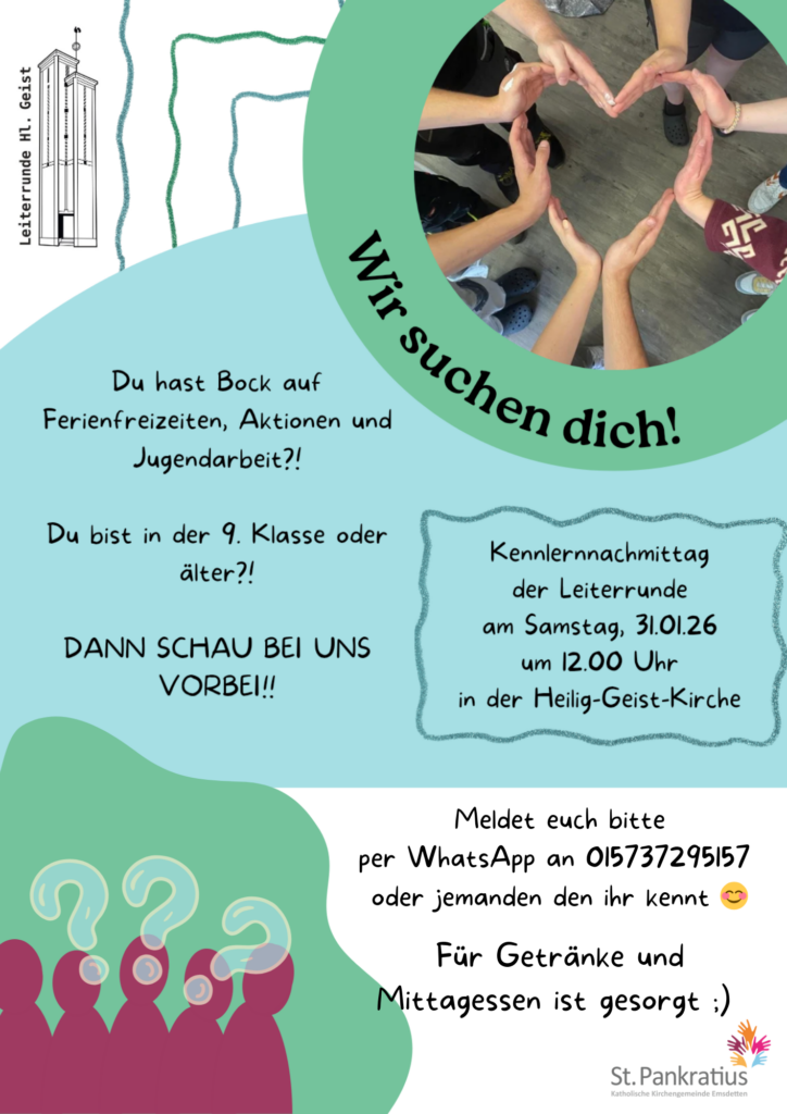 Kennlernnachmittag der Leiterrunde am Samstag, 31.01.26 um 12.00 Uhr in der Heilig-Geist-Kirche.